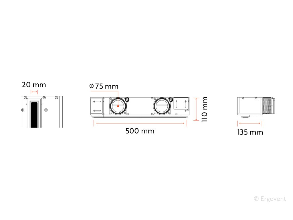 Ergovent Lineo Pro Single 500 – 75 mm je lineární štěrbinový difuzor určený pro přívod nebo odvod vzduchu ve větracích systémech. Umožňuje skrytou instalaci do sádrokartonových podhledů nebo příček, čímž vytváří moderní minimalistický vzhled interiéru.